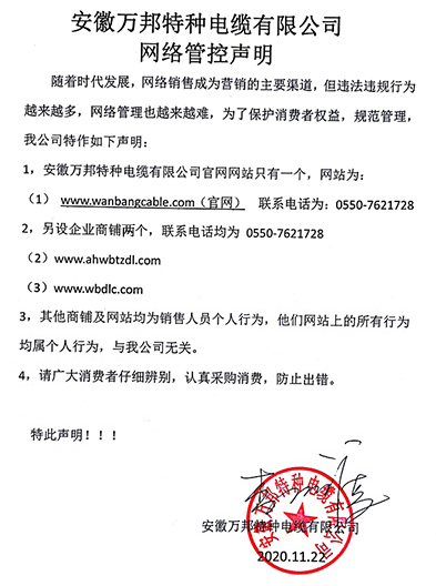 鄭重聲明:安徽萬邦特種電纜有限公司官方網站為:www_wanbangcable_com.daoanrko.cn,除此之外無任何子網站或合作網站,其余均為假冒偽劣。電話:0550-7621728 13485756353 地 址:安徽省天長市滁州高新技術產業開發區經四路29號